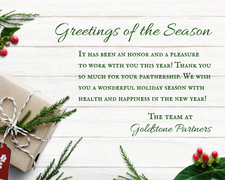 It has been an honor and a pleasure to work with you this year! Thank you so much for your partnership. We wish you a wonderful holiday season with health and happiness in the new year!